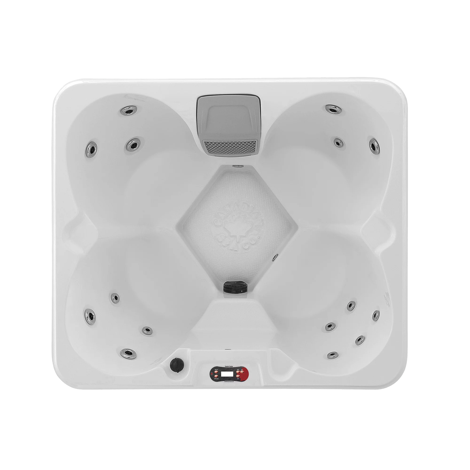 The Canadian Spa Company Gander Plug & Play spa fits in almost any location. This roomy but compact spa is packed with features of a full-sized spa and easily accommodates 4 adults. It features 14 adjustable stainless steel hydrotherapy jets and is energy-efficient and easy to install – just plug it into an outlet and start relaxing right away! The Gander uses 50 sq. ft of filtration along with a built-in ozone generator to keep your water crystal clear without hassle. The multi-coloured LED lighting provides you with the perfect way to truly unwind after a long day.