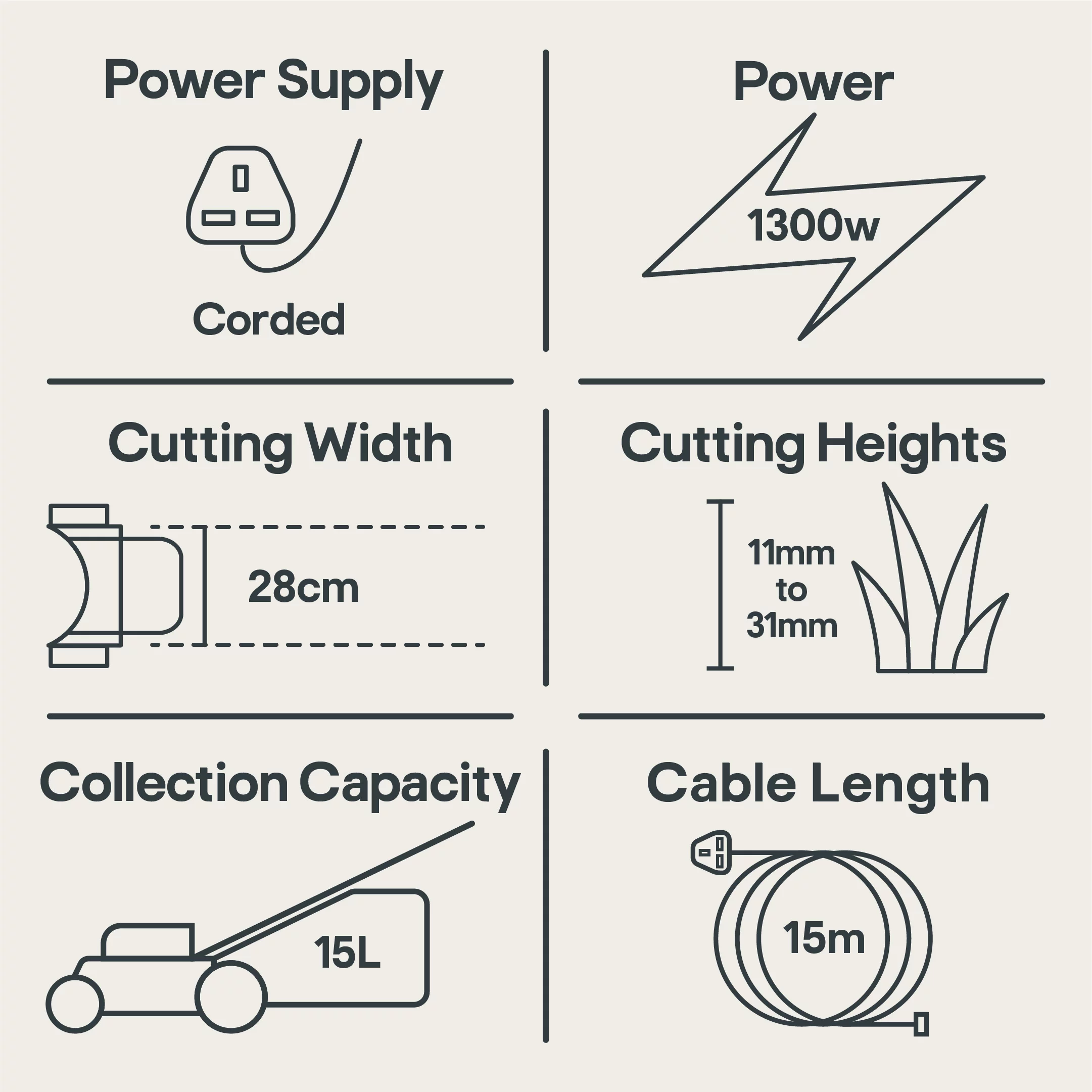 - Powered by a 1300 watt motor, the Flymo Hover Vac 270 will cut your lawn with ease