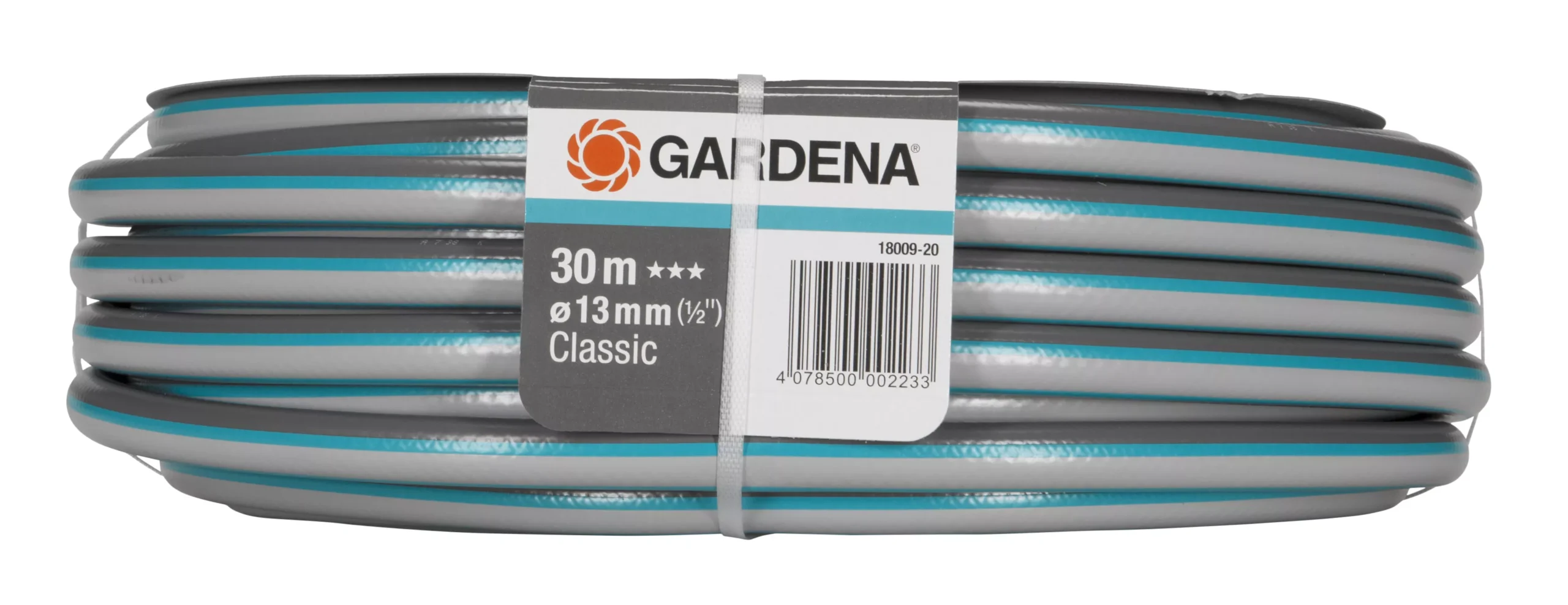 The Classic Hose 13 mm (1/2″) by Gardena has a hose length of 30 m and a diameter of 13 mm (1/2″).
