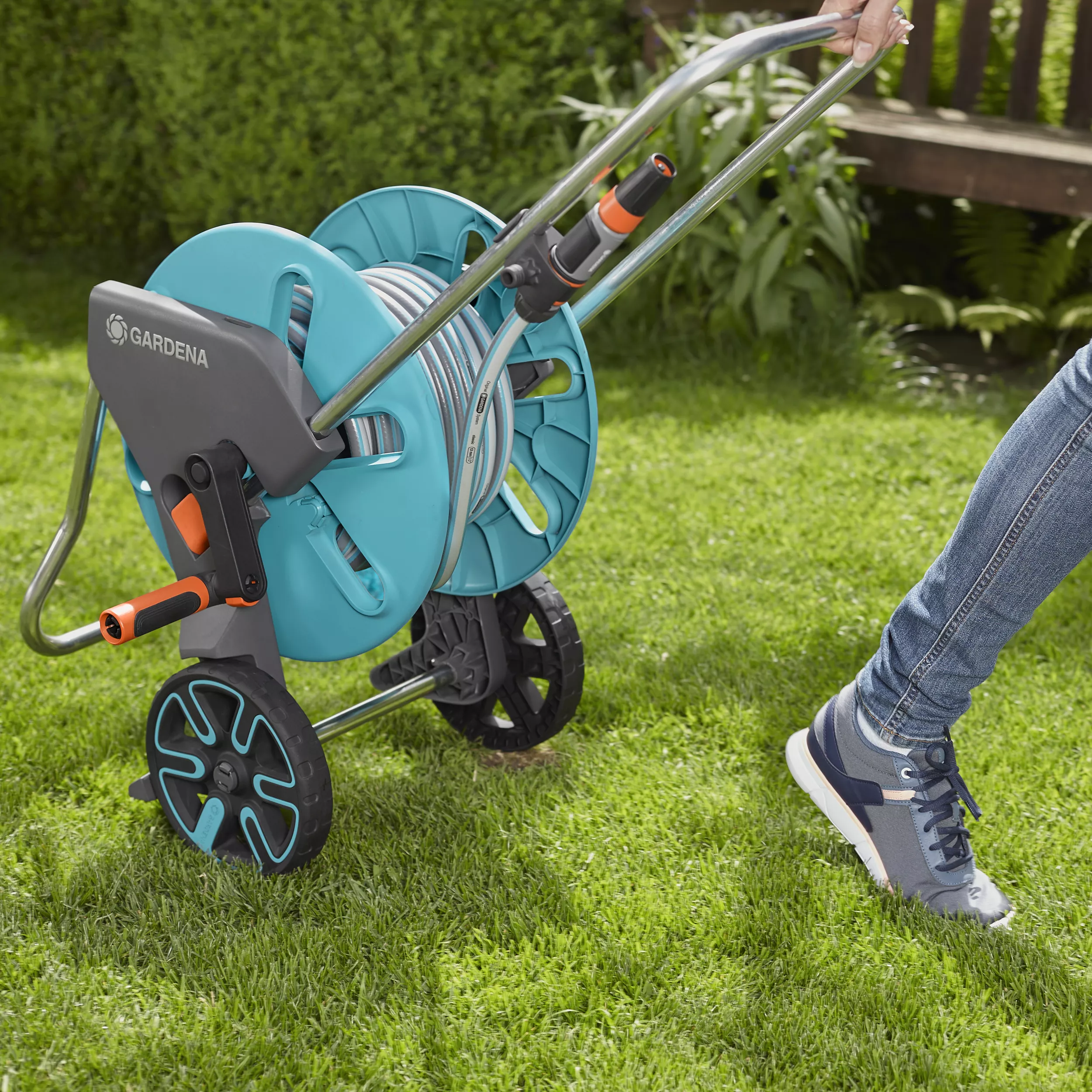 The Gardena CleverRoll M saves space when storing your garden hose. It is convenient to use, with an ergonomic crank and soft plastic components.