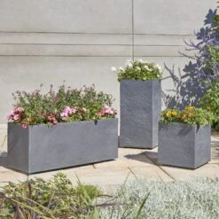Verve Dallas Dark Grey Slate Effect Plastic Square Plant Pot (Dia)40cm