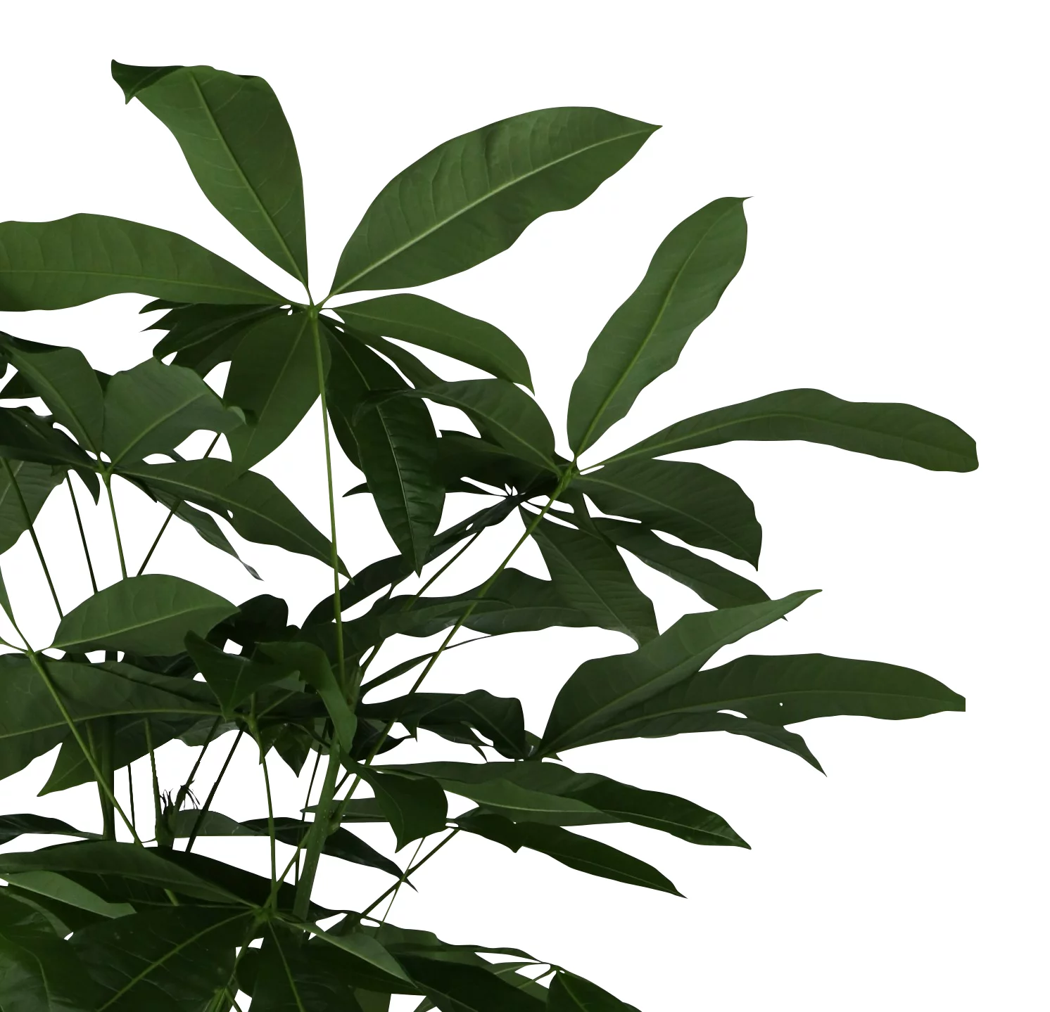 A much admired houseplant for its unique form. Large umbrella-like leaves sit aloft a tall stem, which over time begins to swell at the base as water is stored. Often sold with three stems braided together, creating a lovely effect