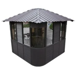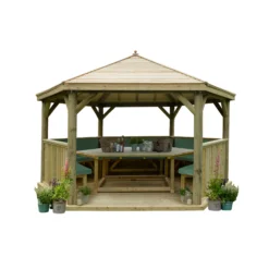 Forest Garden Furnished Timber Roof Hexagonal Gazebo, (W)4900mm (D)4240mm (Green Cushion Included)