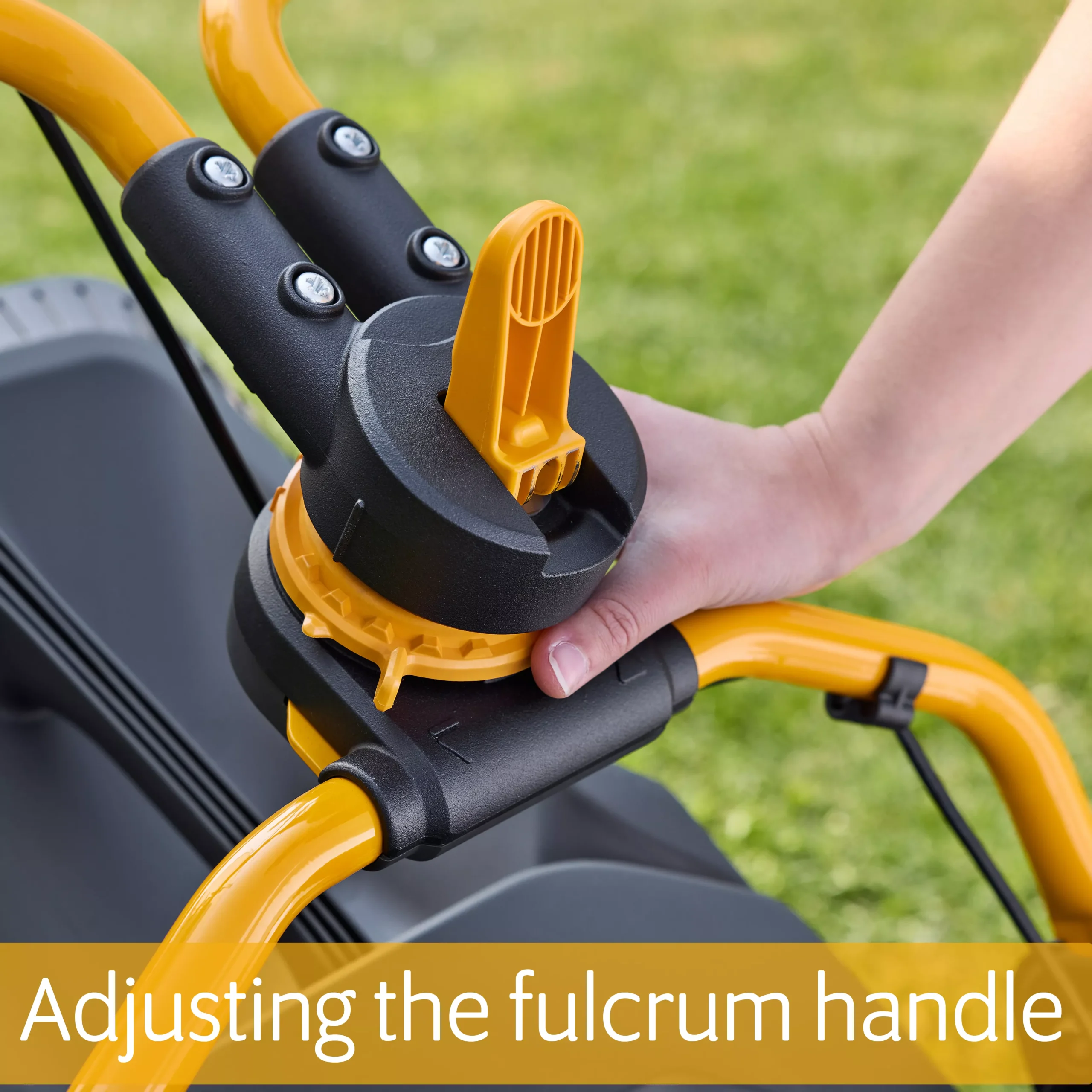 - Fulcrum handlebar can be angled up 25 degrees away from the cutter deck allowing you to mow under hedges and along walls without getting scratched, scuffed or dirty edit