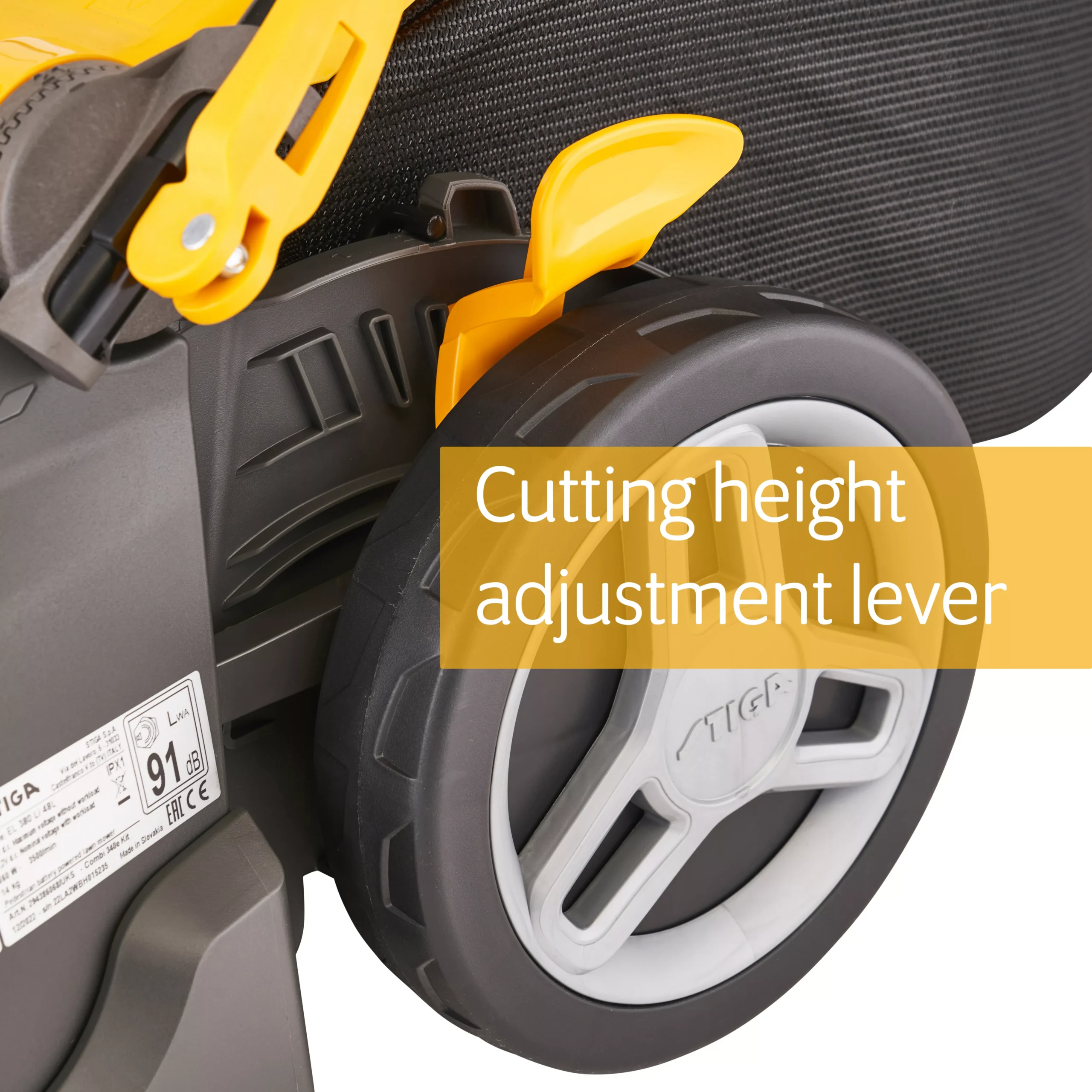 - 42cm Combi cutting deck, adjustable to six cutting heights