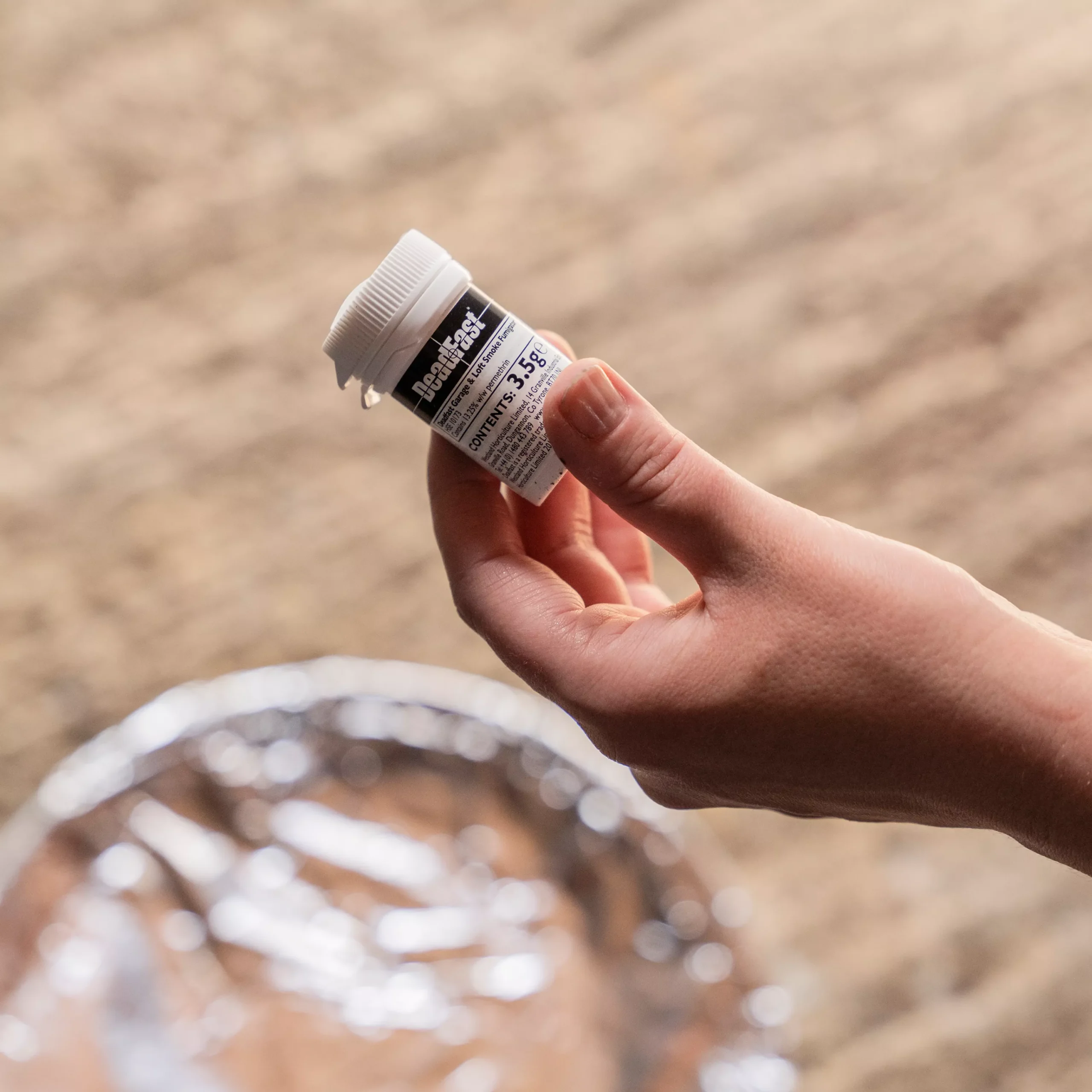 - Instructions for use – For best results use in the late afternoon and leave the greenhouse overnight Ensure that the area to be treated is as smoke tight as possible by closing all windows and door entrances, etc. Cover water storage tanks before application Remove the plastic lid and place the white pot on the upturned tin on a stable heat-resistant surface (e.g. a plate on a 0.5m² of aluminium foil) Light the fuse carefully as it may emit some sparks upon ignition and exit the space. After ignition there is brief dense emission of smoke Exclude all people and animals for 12 hours and then ventilate thoroughly For severe infestations repeat 3 times at 5 to 7 day intervals using a new smoke generator each time